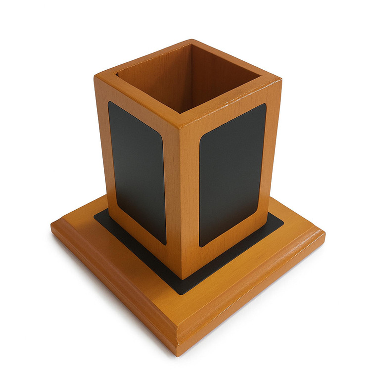 این مجموعه 11 عددی شامل یک زیر دستی بزرگ به ابعاد 60 در 40 (جهت قرار گیری در زیر دست هنگام نوشتار) ، هلدر گوشی موبایل چوبی ، جامدادی رومیزی ، استند خودکار ، پایه تقویم ، جای کاغذ یادداشت ، کازیه دوطبقه سایز A4 ، نگهدارنده نامه ، پرچم جمهوری اسلامی ایران (به همراه پایه) ، یک کره زمین تزیینی و یک چاقوی نامه باز کن است که همگی آنها از جنس چوب طبیعی به همراه روکش رنگ مرغوب ساخته شده اند و برای داشتن یک میز کار منظم بسیار کاربردی میباشد.